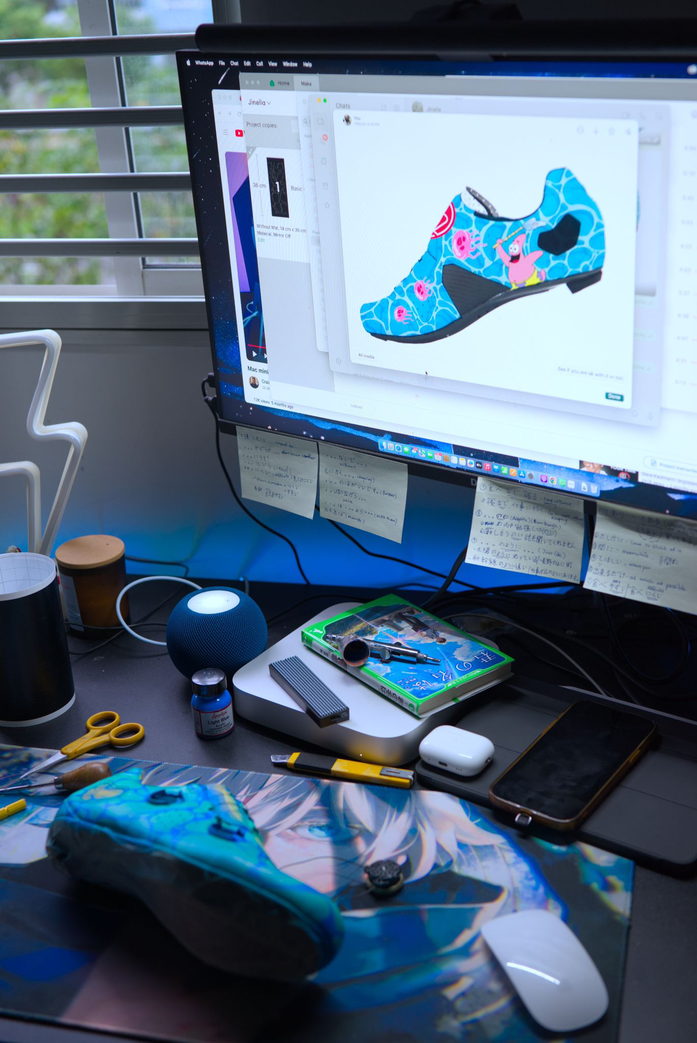 Instead, he’s redirecting some of that energy into going deeper into the craft of shoe customization. Since he also takes on projects involving regular sneakers, Yen has been increasingly curious about how he can get to the roots of making a pair of shoes. He believes that understanding everything down to the nuts and bolts of what goes into making a sneaker would give him greater agency when it comes to bringing his visions to life on various pairs.