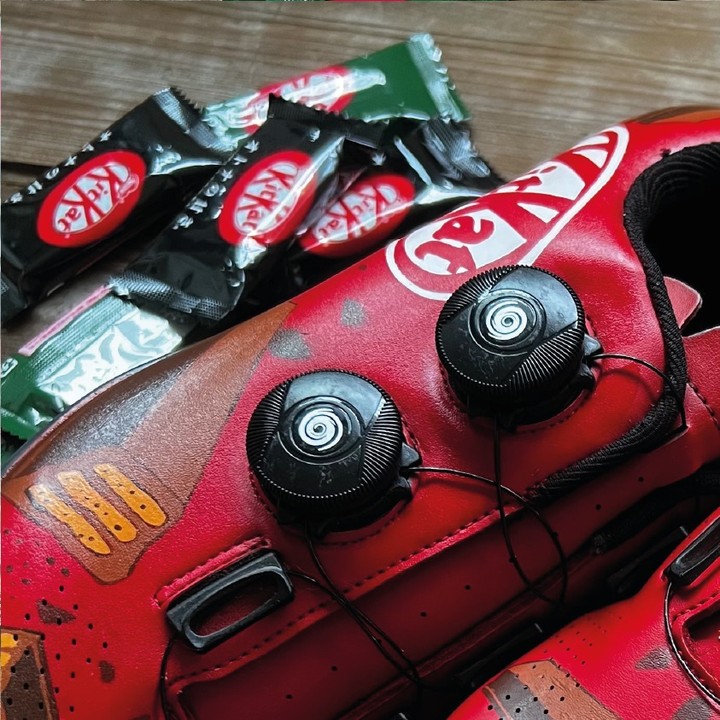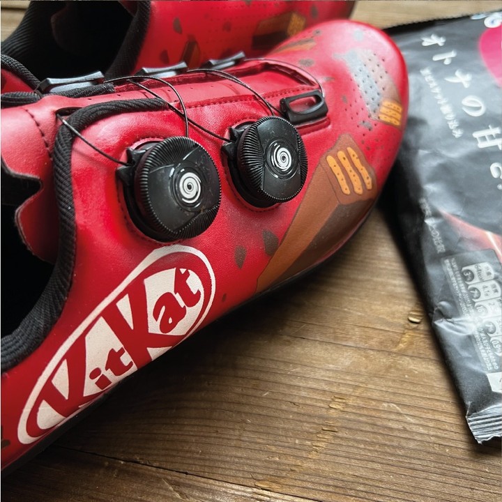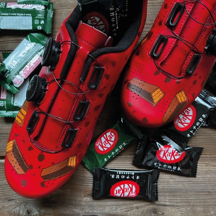 Yen: The first pair I did was for free using my friend’s cycling shoes. I decided on the KitKat theme on a whim. I literally just went to YouTube and watched tutorial videos. Ultimately this is a craft you just have to get your hands dirty doing and learn on the ground, using the first few pairs as testers. Just beware that you can’t trust what you see online sometimes. But, all things considered, I think my first one turned out quite alright! The base color of the shoe was grey, to begin with.